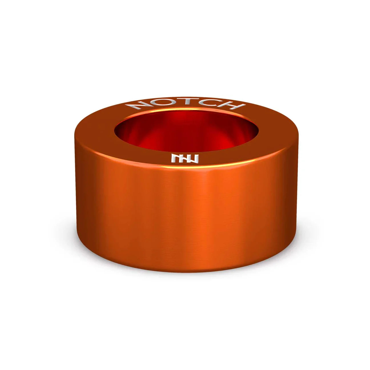 Notches are designed and made in the UK, from aluminium, brass, or stainless steel. They measure 10.75mm in diameter and have a 5.00mm wide rim.